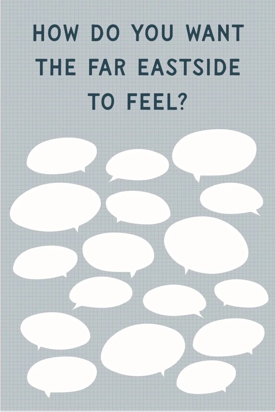 We want to hear from you! What are the boundaries of the Far Eastside? Write in the streets that you feel make up the borders? How do you want the the Far Eastside to feel?